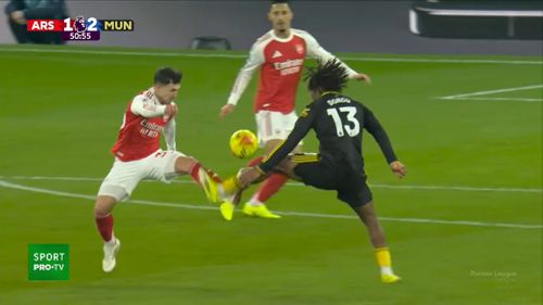 Aflat în duel cu fundașul lateral al lui Arsenal, Lisandro Martinez a deviat nefericit mingea în propria poartă.