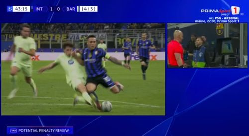 În minutul 45, Pau Cubarsi a avut o alunecare decisivă la Lautaro Martinez, iar în urma verificării la VAR a fazei, arbitrul Szymon Marciniak a acordat lovitură de la 11 metri pentru Inter.