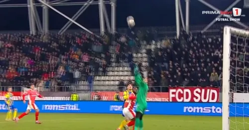 Portarul lui Dinamo a ieșit dintre buturi pentru a prinde mingea dar, după ce a atins balonul, s-a dezechilibrat și l-a scăpat.