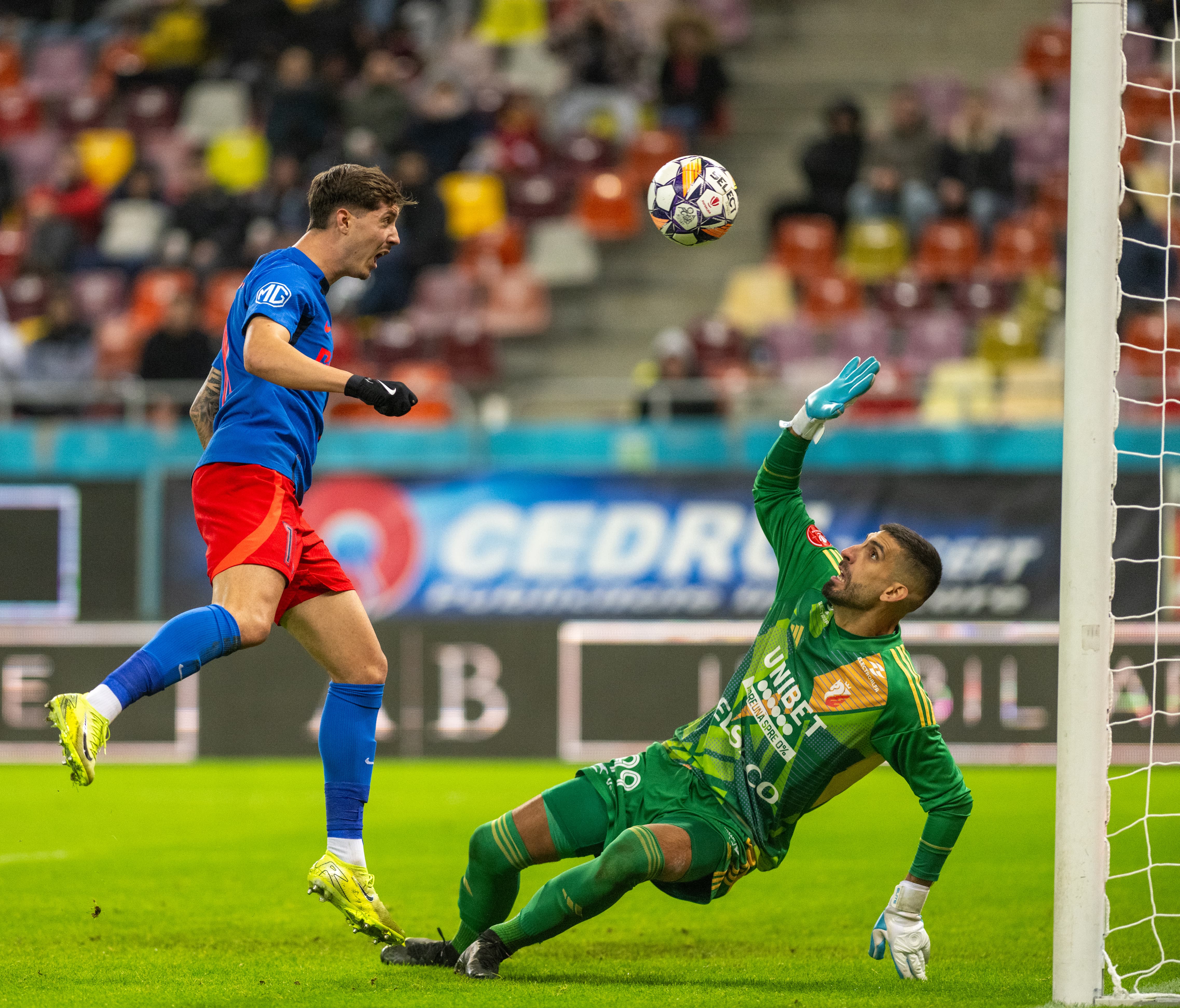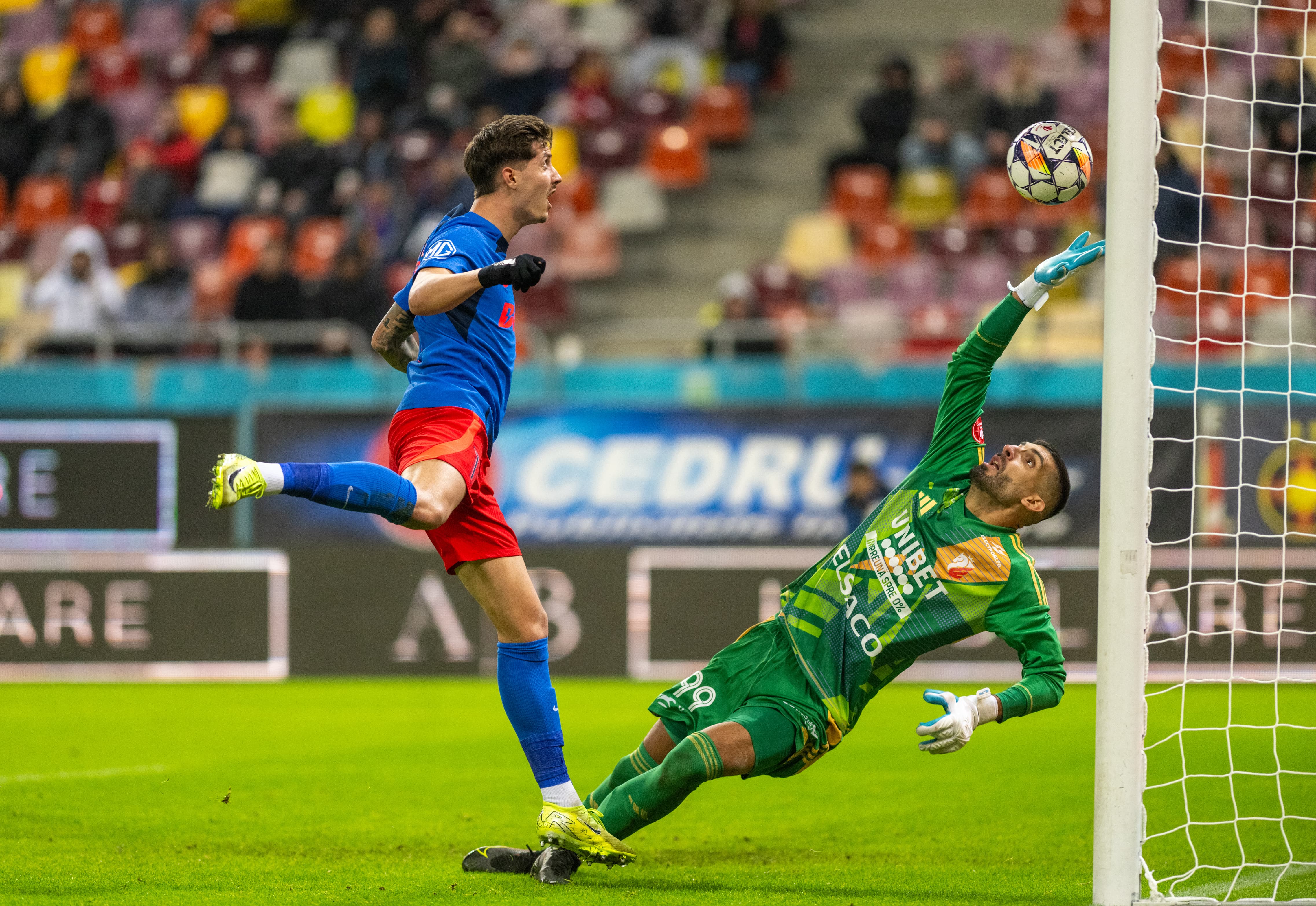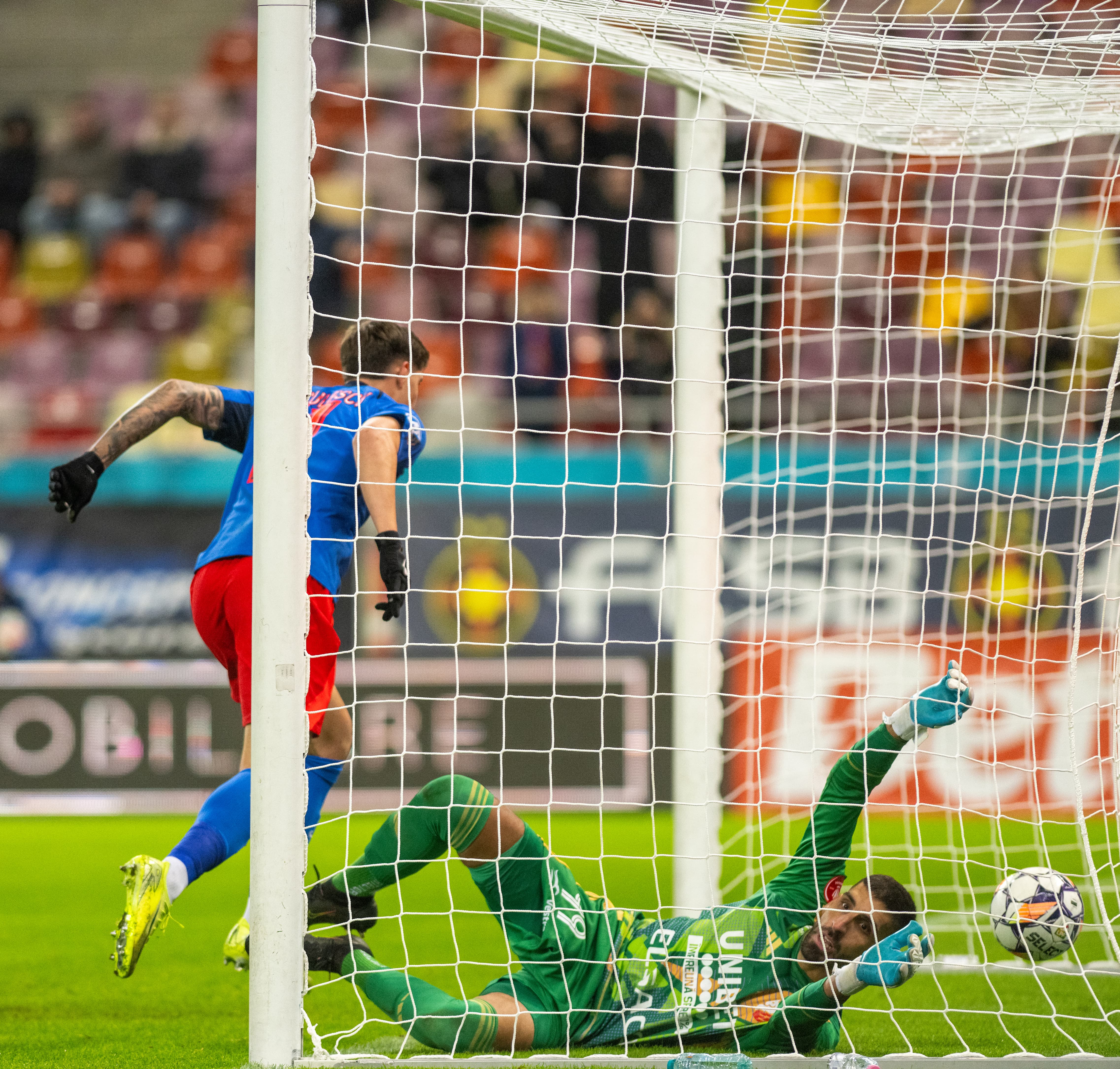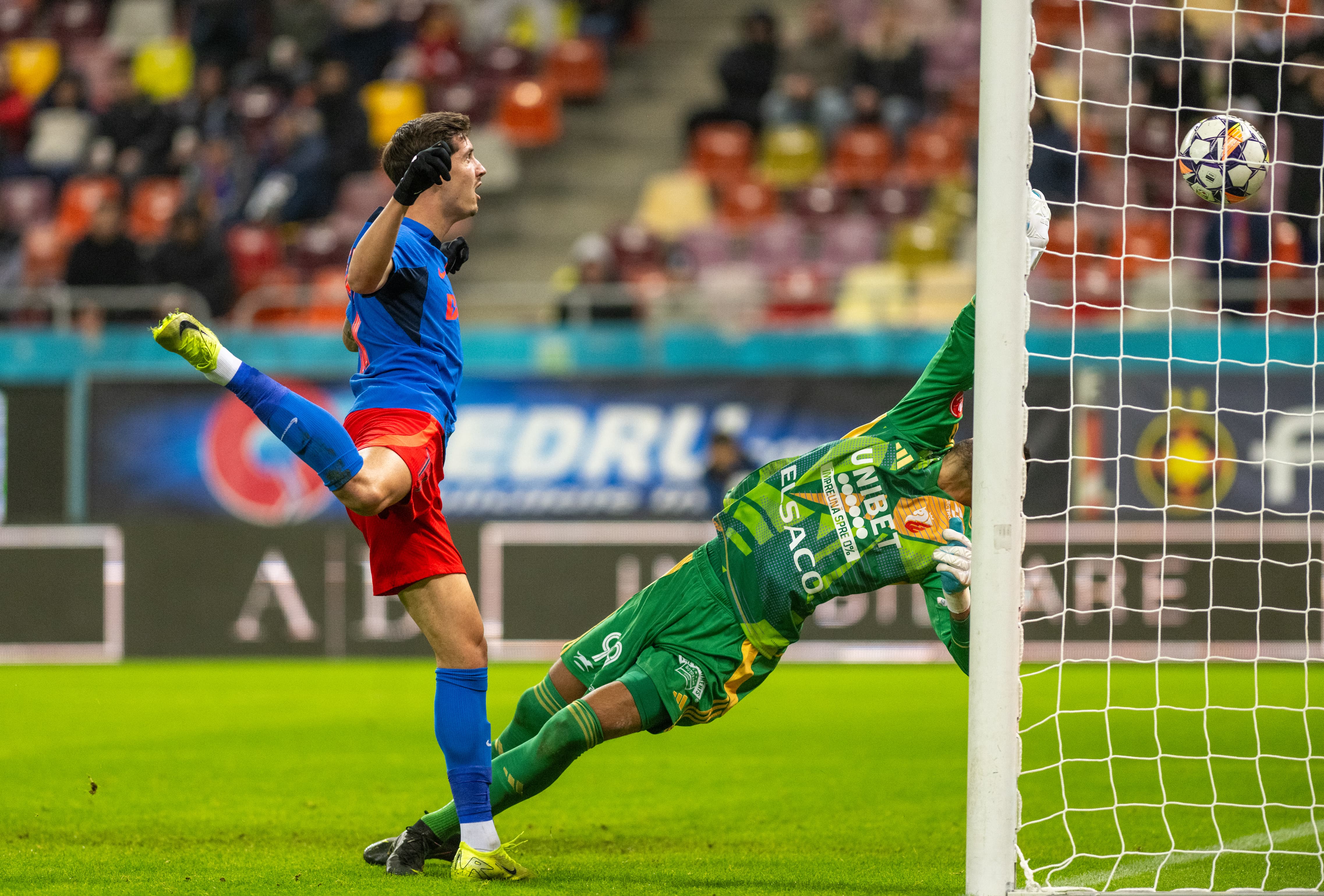 Min. 3 - FCSB, aproape de gol! Anestis nu prinde un balon ușor, centrat pe jos, Toma întinde piciorul, însă portarul se repliază și își repară greșeala.
