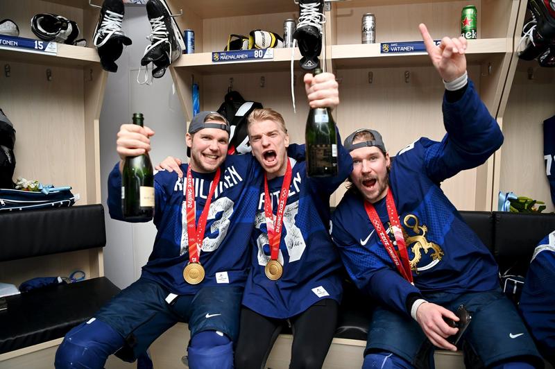 Finlanda a câștigat în premieră titlul olimpic la hochei pe gheață, iar petrecerea din vestiarul nordicilor a scos la iveală imagini care s-au viralizat.