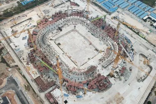 Constructia a început în zona Panyu, Guangzhou, lângă gara Guangzhou South iar costul a fost estimat la aproximativ 1,7 miliarde euro. Stadionul ar fi trebuit să fie gata în 2022, conform cgtn.com.