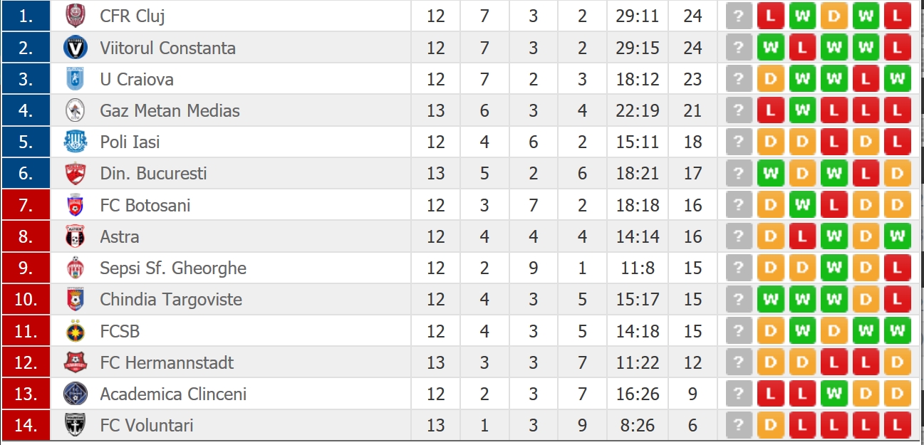 Liga 1, clasament în timp real: