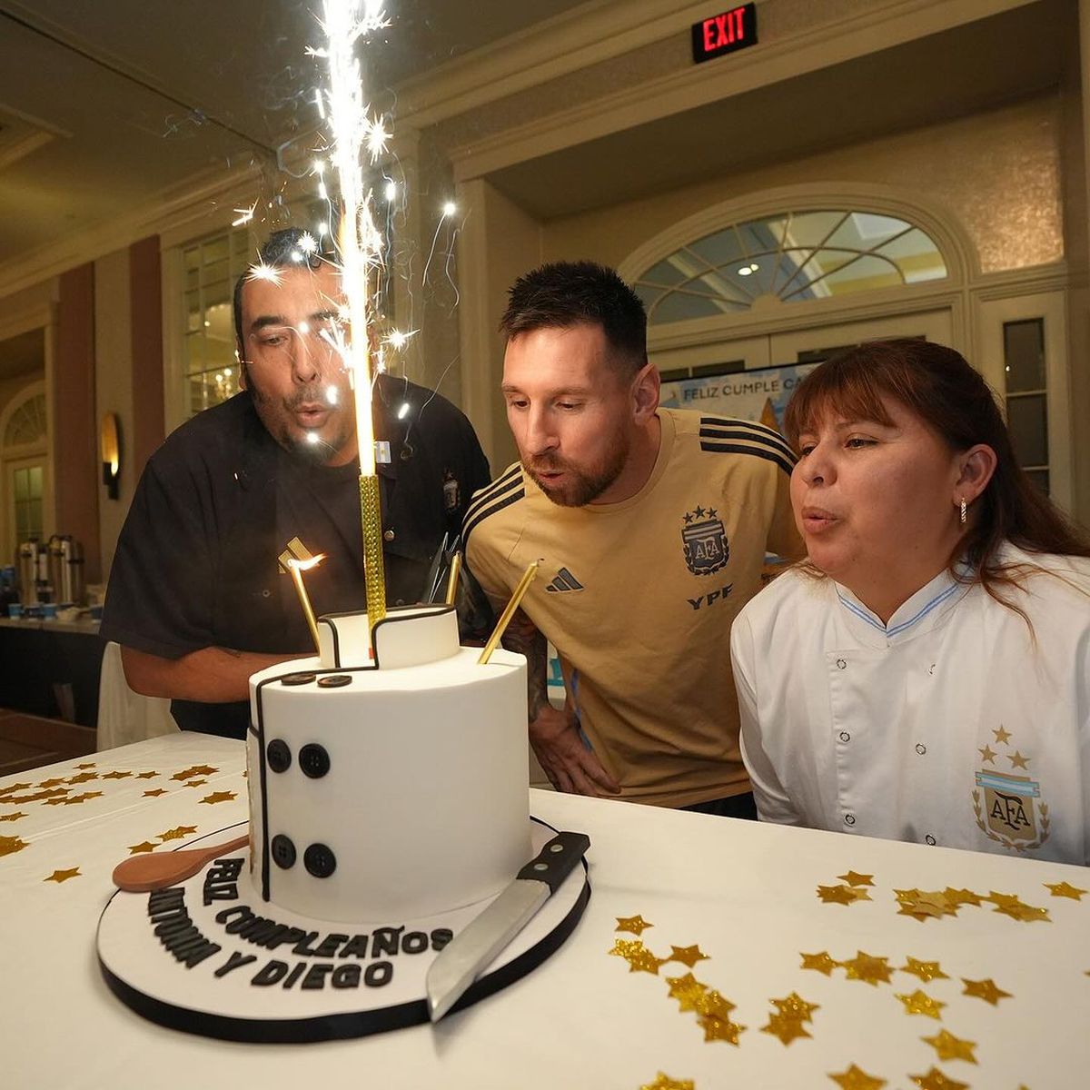 În cantonamentul naționalei, Leo a sărbătorit alături de Antonia și Diego, bucătarii primei reprezentative argentiniene, născuți și ei pe 24 iunie.