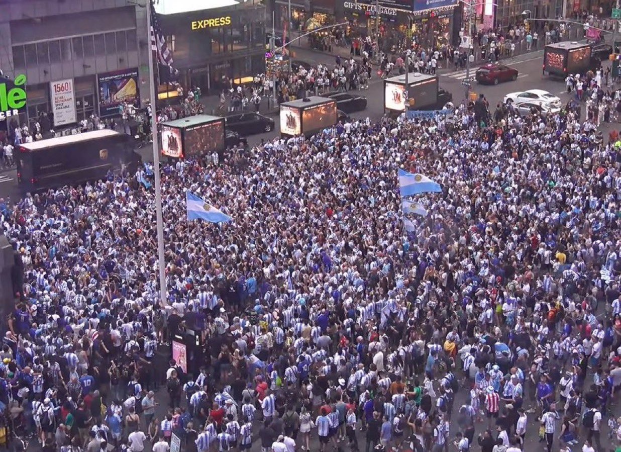 În ziua în care Messi a împlinit 37 de ani, fanii argentinieni prezenți în Statele Unite pentru a asista la Copa America i-au cântat „La mulți ani” în celebra Times Square, din Manhattan.