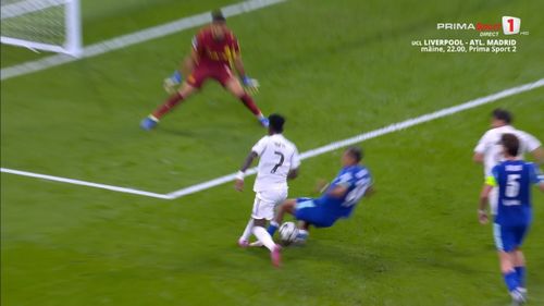Rămași în zece oameni, cei de la Real au continuat să atace poarta apărată de Rulli. Așa a apărut ocazia lui Vinicius, din minutul 80. Brazilianul a șutat din interiorul careului, Medina l-a blocat, iar, din piciorul fundașului, mingea a sărit spre mâna acestuia.