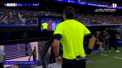 VAR-ul a intervenit, pentru că arbitrul Irfan Peljto era cu spatele la fază, iar „centralul” a luat decizia de a-l elimina pe spaniol.