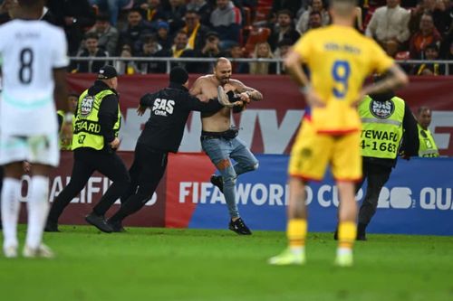 În minutul 77 al duelului dintre România și Austria, un suporter a intrat pe teren. „Centralul” Davide Massa a fost nevoit să întrerupă jocul.