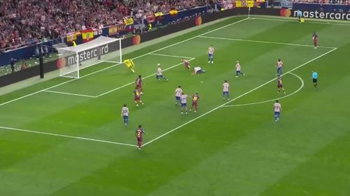 În încercarea de a respinge, portarul lui Atletico a ridicat piciorul, iar în contactul care a urmat l-a lovit involuntar pe Lopez cu gheata în zona feței. Arbitrul nu a considerat că a fost fault și nu a acordat nimic.