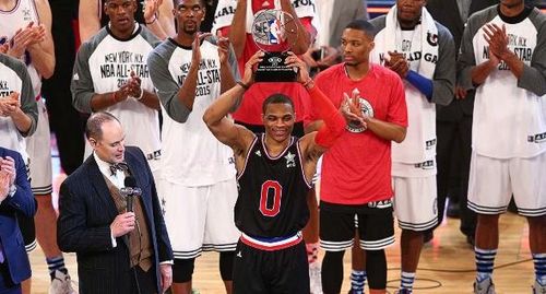 Echipa Conferintei de Vest a castigat, duminica, la New York, All Star Game, impunandu-s in fata selectionatei Conferintei de Est cu scorul de 163-158, un rezultat record, dupa un meci in care baschetbalistul Russell Westbrook (Oklahoma City) a reusit 41 de puncte, informeaza presa internationala.