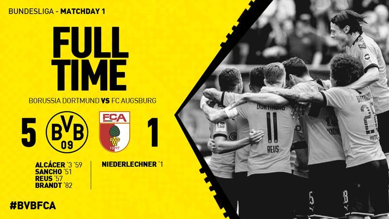 Borussia Dortmund a trecut fără nicio emoție, scor 5-1, pe propriul teren, de Augsburg în prima etapă a campionatului din Germania (Bundesliga). Într-o altă dispută a zilei, Bayer Leverkusen a câștigat meciul cu Paderborn, 3-2.