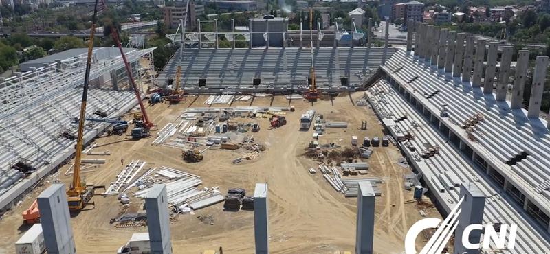 Compania Națională de Investiții a prezentat noi imagini de la Stadionul din Giulești, arena Rapidului prinzând din ce în ce mai mult contur. Au fost montate gradenele, iar în prezent se lucrează la structura metalică pentru acoperiș și la interioare.